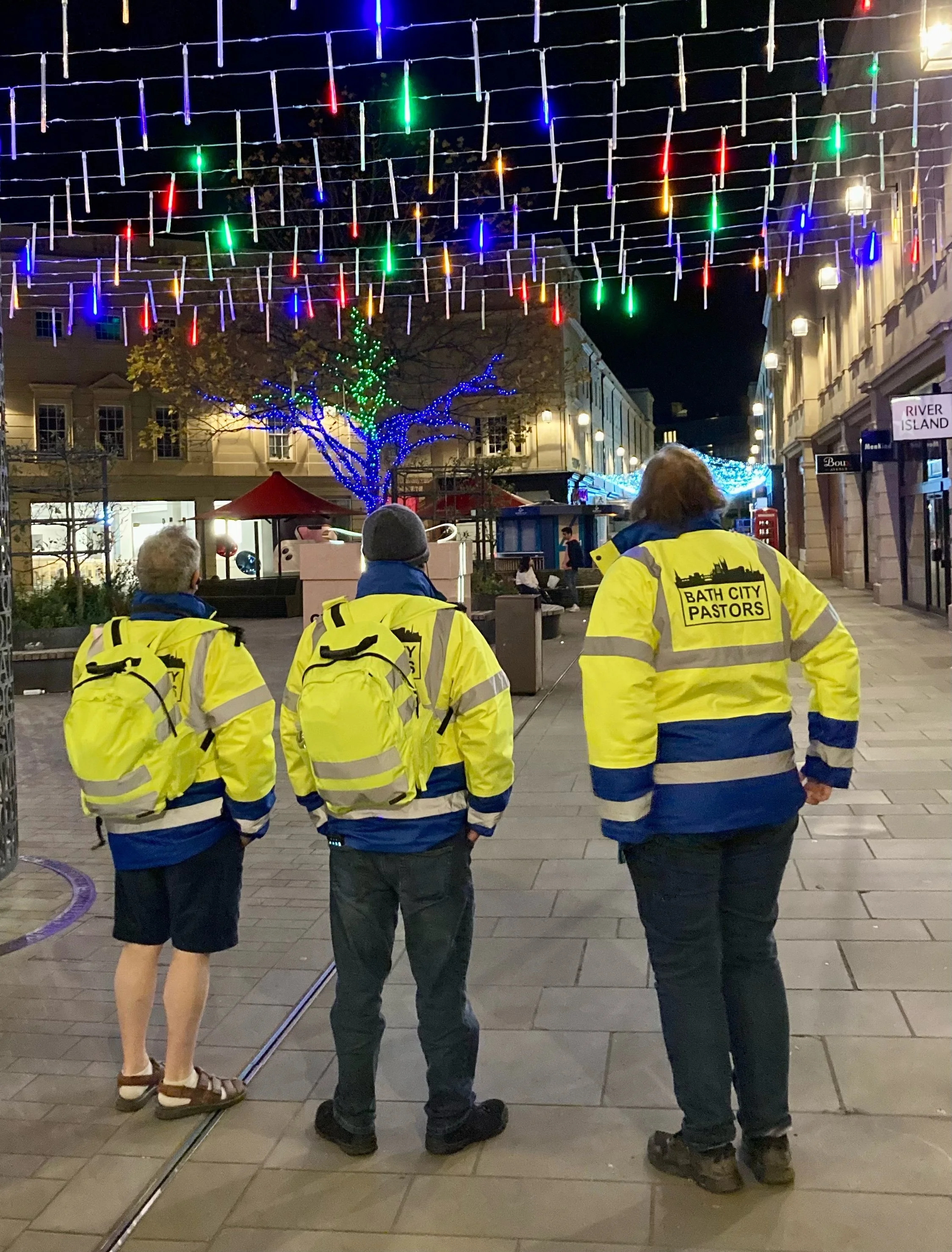 Bath City Pastors are volunteers from churches in and around Bath. We come from many different walks of life but share our Christian faith. You may have known us as Street Pastors; we’re the same people, just with a new uniform!